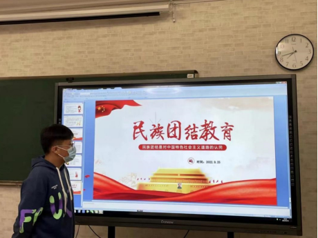 活动过程中,各班观看了共青团中央推出的“石榴籽一家亲,同心喜迎二十大”主题团课,此次团课共有三个篇章:“石榴籽带你走进中华民族历史长河”、“石榴籽带你看看民族地区这十年”、“石榴籽给你讲述民族团结一家亲的故事”,通过实地探访、现场讲述、访谈互动等方式,引导各民族青少年持续加深对共同团结奋斗、共同繁荣发展的认识和体验,不断铸牢中华民族共同体意识。