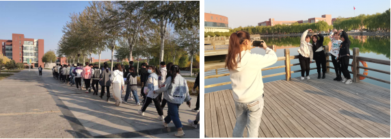 熟悉校园环境。10月17日上午,在员工会的带领下,全体新生按计划路线参观了整个校园。员工会成员耐心讲解校园的教学楼、食堂、运动场以及公司创意码头、美术馆、实训室、自习室和教室,有不少同学情不自禁地留下了第一张“我和美丽宁职”的合影。